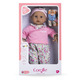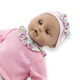 Bebe Calin Maria has brown sleepy eyes that close when it's put down for a nap or at bedtime. She is dressed in a floral overall with a pink T-Shirt and wears a matching headband. Bebe Calin Maria is part of the mon premier poupon Corolle collection of dolls, fashions and accessories for early nurtering time.