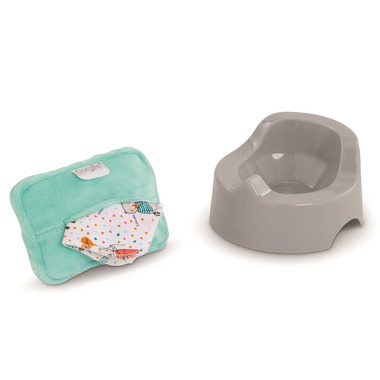 With a potty, cloth baby wipe and cover, Corolle's Potty & Wipe Set is essential to help little ones learn to care for a favourite 12-inch baby doll. It's part of the mon premier poupon Corolle collection of dolls, fashions and accessories for beginning doll play. Ages 18 months and up.