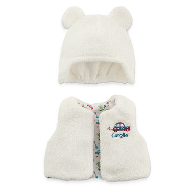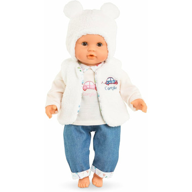 Brrr! It's winter, it's cold... This Weekend in Paris Winter Set is the perfect finishing touch to an outfit for little 30 cm dolls. It includes a pretty, soft, reversible sleeveless cardigan and a fluffy beanie with teddy bear ears to keep your little one snug and warm. The lining of the cardigan features the exclusive fabric of the Week-End in ParisӔ collection, a nod to our capital city. A little car is embroidered on the front of the vest.