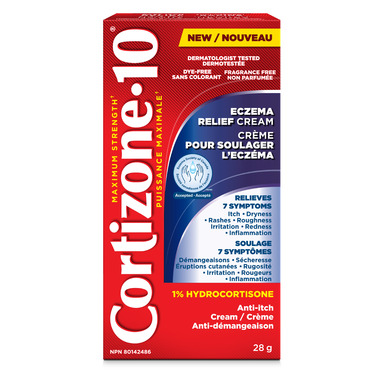 Stop the Itchsanity with Maximum Strength Cortizone-10 Eczema Relief Cream 1% Hydrocortisone Cream. This anti-itch cream is your solution for the temporary relief of 7 frustrating symptoms associated with eczema. The Eczema Relief Cream formulation with 1% Hydrocortisone helps relieve redness, itch, dryness, rashes, roughness, irritation, and minor skin inflammation. This eczema cream for adults and children 2 years and older is dermatologist tested, fragrance free and dye free. Cortizone-10 Eczema Relief Cream has earned the Seal of Acceptance from the Eczema Society of Canada, and it is hypoallergenic and clinically proven to provide the temporary relief you need. Add Cortizone-10 Eczema Relief 1% Hydrocortisone Cream as part of your eczema treatment. Keep this and all medication out of reach of children. To ensure this product is right for you, always read and follow the label.