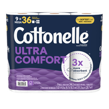 Cottonelle Ultra Comfort Cushiony Toilet Paper is their most Absorbent, Softest and Thickest Toilet Paper. Comfort Cushiony bath tissue is uniquely designed with a soft, cushiony CleaningRipples Texture that removes more at once per sheet with ultimate comfort. Made with water & renewable, plant-based fibers, it's biodegradable, clog-safe, septic-safe, and sewer-safe.