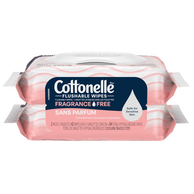 Enjoy a complete clean with the #1 septic-safe wipes brand, Cottonelle Fragrance Free Flushable Wet Wipes. The adult wet wipes break down like toilet paper. Designed with sensitive skin in mind, these flushable wipes are fragrance and alcohol free. They contain no harsh chemicals, dyes, or plastic fibers and are made with 95% water, so you can have comfort and peace of mind. Each flip-top pack has 42 flushable wet wipes per pack. Cottonelle wipes only use fibers that are 100% biodegradable.