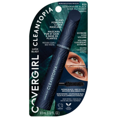 The COVERGIRL Lash Blast Cleantopia Mascara is the brands first plant-powered clean vegan mascara formulated with 100% cellulose plant fibers. This shade contains ultramarine pigments for an intense black mascara shade with a hint of blue for brighter, wide-awake eyes. Its clean, vegan formula is made with 72% natural origin ingredients and infused with aloe leaf extract, ceramide and sustainably sourced rainforest maracuja oil. The hourglass lush mascara brush wraps, lifts, lengthens and volumizes every single lash from root to tip, for up to 302% more volume*. Formulated for all types of eyelashes, the easy-to-remove formula leaves lashes feeling conditioned, nourished, and cared for. This mascara provides up to 24-hour smudge-proof, flake-free wear without any clumping.