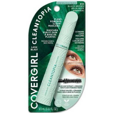 The COVERGIRL Lash Blast Cleantopia Mascara is the brands first plant-powered clean vegan mascara formulated with 100% cellulose plant fibers. This shade contains ultramarine pigments for an intense black mascara shade with a hint of blue for brighter, wide-awake eyes. Its clean, vegan formula is made with 72% natural origin ingredients and infused with aloe leaf extract, ceramide and sustainably sourced rainforest maracuja oil. The hourglass lush mascara brush wraps, lifts, lengthens and volumizes every single lash from root to tip, for up to 302% more volume*. Formulated for all types of eyelashes, the easy-to-remove formula leaves lashes feeling conditioned, nourished, and cared for. This mascara provides up to 24-hour smudge-proof, flake-free wear without any clumping.