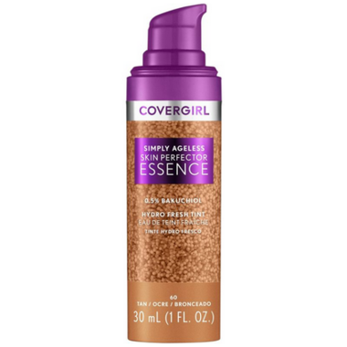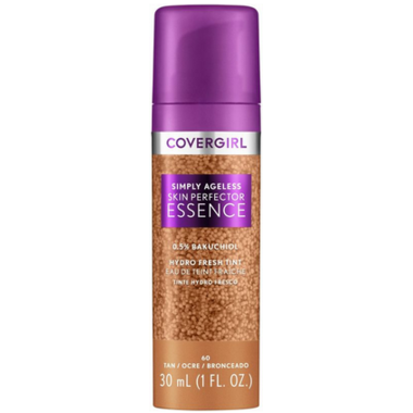 The Covergirl Simply Ageless Skin Perfector Essence Foundation is a vegan skincare makeup hybrid formulated with 0.5% bakuchiol, a plant-based retinol alternative perfect for sensitive skin, the skin-plumping formula reduces the appearance of fine lines and wrinkles and increases skins firmness. It also contains tranexamic acid, the potent tone-improving facial essence fades the appearance of existing dark spots.