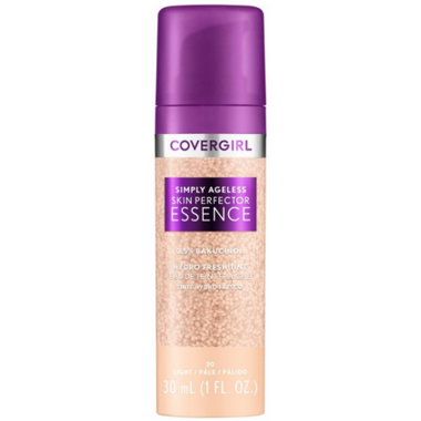 The Covergirl Simply Ageless Skin Perfector Essence Foundation is a vegan skincare makeup hybrid formulated with 0.5% bakuchiol, a plant-based retinol alternative perfect for sensitive skin, the skin-plumping formula reduces the appearance of fine lines and wrinkles and increases skins firmness. It also contains tranexamic acid, the potent tone-improving facial essence fades the appearance of existing dark spots.