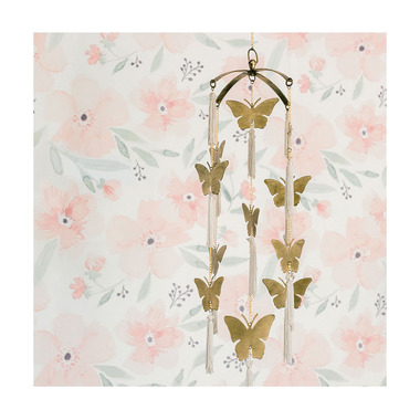 Blooming Blossoms Greet The Morning Sun. Soft emeralds and pleasant velvets weave floral, tie-dye and leaf print designs together in the beautiful Parker Collection. Welcome the new day with hand-crafted nursery decor like the whimsical butterfly mobile, or hand-stitched and lovely Parker quilted playmat. Baby blankets, crib sheets and decor as precious as your new bundle of joy. If you love the whimsical look and feel of nature, this butterfly ceiling hanging will be the perfect nursery decor. This handcrafted ceiling hanging decor will capture your baby's attention and create a lovely focal point for your nursery. Pair this gorgeous nursery decor with our Crane Baby bedding sets, to give baby's nursery a perfectly curated look (sold separately).