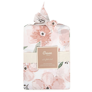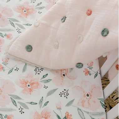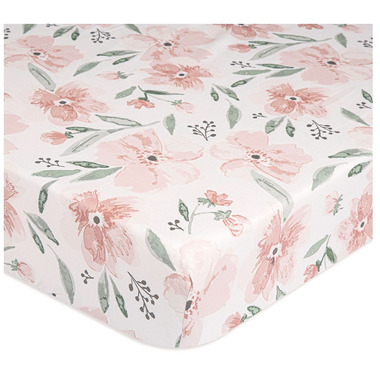If you're looking for the perfect feminine and whimsical crib sheet for your baby's nursery, the floral Parker Fitted Crib Sheet is perfect! With soft pinks, green and whites, this fitted crib sheet will help add a soft and beautiful touch to any nursery. Made from 100% sateen cotton the sheets are very comfortable and soften with every wash