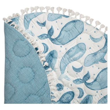 The Cool Breeze of the Moonlit Sea. Shades of indigo and ivory bring to mind the calming lap of waves and sea breeze in the Caspian Collection. Hand-designed hangings and artisan carvings add a charming nautical touch. The tranquility and peace of the ocean hues make this collection a favourite for lulling newborns off to dreamland. Sweet dreams little one. The Caspian Quilted Playmat will bring a peaceful yet beautiful feel to your baby's space. Perfect for tummy time and playtime alike, this stunning piece features handmade detailing and is even machine washable.