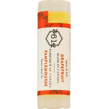 Crate 61 Organics Grapefruit Lip Balm has a combination of organic pink grapefruit, sweet orange and bergamot essential oils gives this lip balm a fresh fruity flavor.