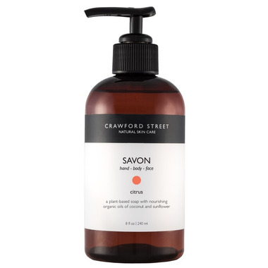 Directions: Dispense into hands and apply to dampened skin. Gently massage into a lather and rinse well with warm water. Follow with any Crawford Street body lotion or body oil.