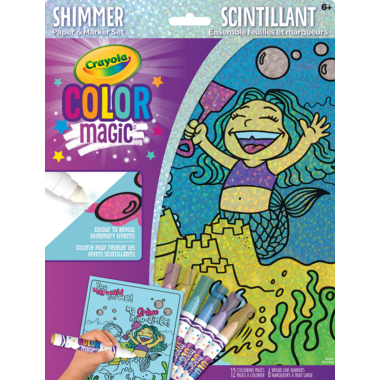Crayola Color Magic transforms ordinary colouring with amazing shimmery colour effects. Watch as mermaids shimmer in these dazzling blue underwater scenes with the specially formulated Color Magic paper and markers! This set includes 12 Color Magic colouring pages and 6 broad line Color Magic markers. Recommended for ages 6 and up.