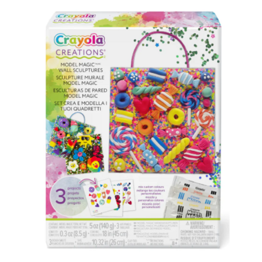 Create your own unique wall décor with Crayola Creations Model Magic Wall Sculptures kit. Use the design sheets to get inspired as you create your very own custom wall art using Crayola Model Magic! This kit includes 5 packs of Model Magic (140 g), 3 art panels, confetti, cording, 3 design sheets, tape, clay tool and instructions. Makes a perfect gift for holidays, birthdays and every occasion in between! This kit is ideal for crafty kids and tweens aged 8 and up.