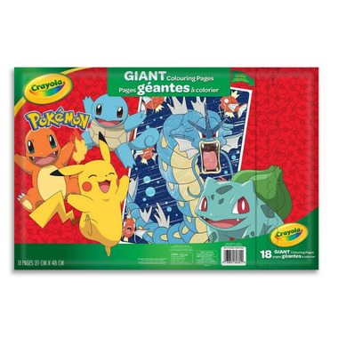 • CRAYOLA GIANT COLOURING PAGES: Features 18 super-sized colouring pages for kids, featuring characters from Pokemon!