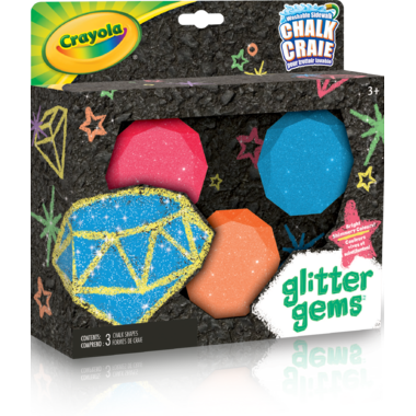 Crayola Sidewalk Chalk Glitter Gems are jewel-shaped chalk sticks that come in vibrant colours, packed with reflective glitter so you can bedazzle your driveway or rock the walk!