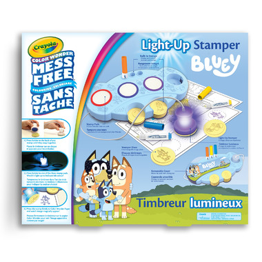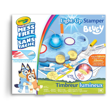 Light-up stamper magically lights up the matching colour selected from the ink pads. Kids will have fun stamping and colouring in their favorite cast of Bluey characters.