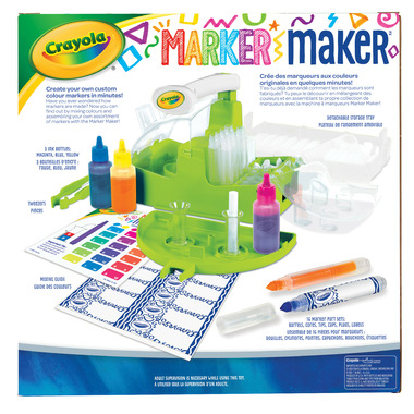 - The Crayola Marker Maker includes everything you need to make 16 custom markers: 3 ink bottles, 1 marker maker, 2 measuring tubes, tweezers, 16 Broad Line marker components & instructions