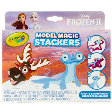 Create layered sculpture designs with Crayola Model Magic Frozen 2 Stackers Craft Kit. These inventive stencils are designed for use with the included Crayola Model Magic modeling material. Just fill the first stencil with Model Magic, then place the next stencil on top and fill. Repeat with the third stencil and remove to reveal an amazing three-dimensional character.