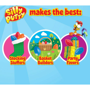Stretch your imagination with Silly Putty - the crazy compound that bounces, molds, stretches, snaps, and more! With its fun ability to act as both a solid and a liquid, Silly Putty encourages kids to experiment and challenges their imaginations. Roll it into a ball and watch it bounce, stretch it out to its limits, snap it into pieces, or mold it into various shapes. With a little egg of the stretchy goo in your hand, you can count on hours of fun alone or with friends.