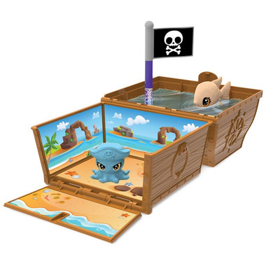 Swim off the beaten bath and deep dive into a treasure-filled adventure with the Crayola Scribble Scrubbie Pets Glow Ocean Playset! This fun toy for boys and girls features 2 Glow Animal Figurines, 3 Washable Markers, 1 Scrub Brush, 1 Glow in the Dark Flag that attaches to your marker, and a Stackable Chest Environment that doubles as a scrubbie tub. Young ocean explorers will love adding unique designs to their sea crew with a slew of Crayola colours! The aquatic critters include Marco the Octopus with a cool glowing blue colour, and Polo the pinecone fish with an electric yellow glowing colour. When kids are ready for something new, they can POP 'em in the chest tub and rinse their fuzzy friends in style! For more washable fun, grow your kiddos Scribble Scrubbie squad with additional expansion packs (sold separately). Safe and non-toxic, ideal for kids ages 3 and up. Buy this imaginative sea animal toy for your favourite ocean explorer's Christmas or Birthday Gift!