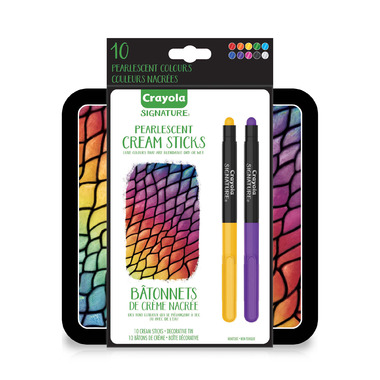 Lay down these Cream Sticks in 10 pearlescent colours and glide their creamy texture across paper, especially on dark backgrounds where the shimmer and shine is most vibrant. Enjoy less mess, too! Unlike traditional oil pastels, their pen-style casing and twist up core allows them to be held without colour rubbing onto hands. Plus, caps and clips keep these colouring supplies protected and ready for on-the-go use. Now that's smart art!