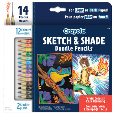 From vibrant doodles to colourful details, this set of Crayola Sketch & Shade Doodle Pencils offers vivid, highly pigmented colours that will stand out. Each Coloured Pencil features a gel core so that they always lay down smoothly on light and dark paper.