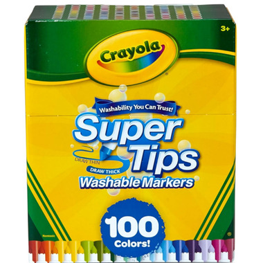Featuring 100 washable nontoxic markers, this marker set includes a wide rainbow of primary, secondary, and complementary colors ideal for coloring, shading, and blending. Great for artists of all ages, this 100-pack of Crayola Super Tips Washable Markers ensures you will always have the color you need.