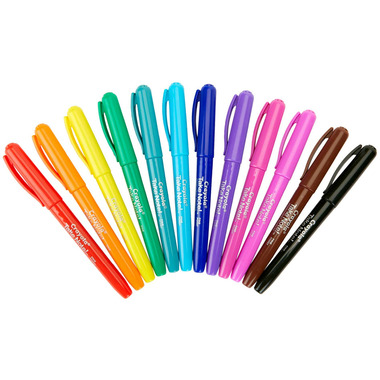 Markers with staying power! Make a statement and make it last with Crayola Take Note Permanent Markers—12 vibrant colours that you can use on just about anywhere. Say it like you mean it on coated paper, photos, clothes or canvas sneakers – they even work on metal, plastic, wood or glass! These markers feature a fine point tip for smooth fine lines perfect for fine detail work. Includes 12 permanent markers in unique, vibrant colours. Ages 6+.