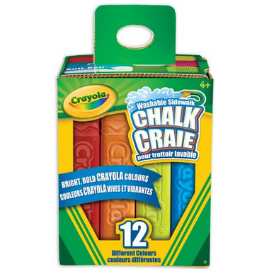 Create huge outdoor art or messages with bright, bold sidewalk chalk! New anti-roll square shape keeps sticks handy without rolling away. Includes 12 different Crayola colours.