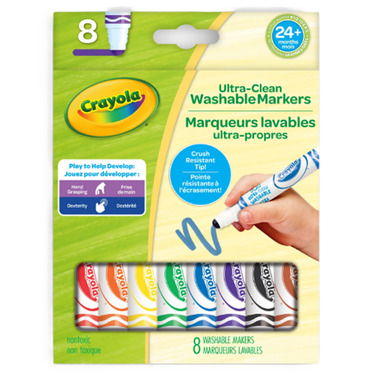 The Ultra-Clean formula means these markers don't stain clothes, furniture, or walls, allowing young artists to explore and create freely without parents worrying about messes. These markers for toddlers come in a range of vibrant colors: red, orange, yellow, green, blue, purple, black, and brown. The bold pigments allow artwork to stand out and come to life on the page.