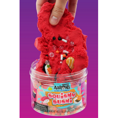 Endulge yourself with Crazy Aaron's Slime Charmers Squishy Sushi. This cloud slime and it's soft texture, stretches folds, molds and more! The most amazing and savoury sushi charms to create a one of a kind spread of Nigiri, Sushi Bowls, Rolls and more! Fresh Strawberry scent for the ultimate sensory expreience. Mix, match, shake and create over and over with Slime Charmers Squishy Sushi!