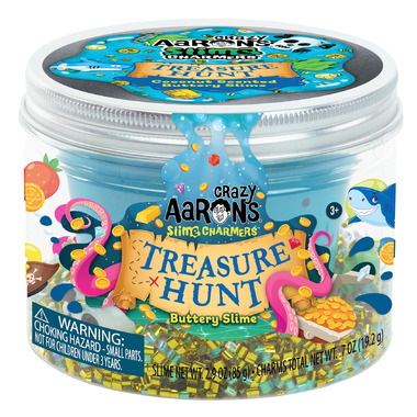 Embark on an adventure with Crazy Aarons Treasure Hunt Slime Charmers! This smooth, Coconut scented, blue butter slime is packed with gold bingsu beads and hidden treasure charms waiting to be discovered. Dig through the slime, uncover your treasures, and let the hunt for fun begin! Squishy, stretchy, satisfying fun! Crazy Aarons Slime Charmers include uniquely themed slimes with delightful scents and exceptional textures.