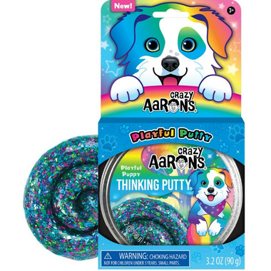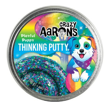 Meet the puppy that loves to play all day in the park. He chases around his rainbow ball until it gets dark. Roll your Thinking Putty up so it's nice and round, this Playful Puppy will be so happy to see you bounce it around. Meet your new best friends! Putty Pets Thinking Putty will be your favorite companions for fidget and focus. Collect them all! Thinking Putty helps build hand and finger strength through a fabulous tactile play experience with unique, unexpected properties and provides relaxing, yet stimulating interaction for anyone with sensory integration issues. Crazy Aaron's putty is non-toxic, won't dry out, and won't leave a sticky or slippery residue on your fingers, so it's great for stretching, molding, bouncing, tearing, popping and playing by kids and adults alike.