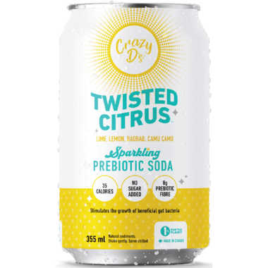 Crazy D's Sparking Prebiotic Twisted Citrus stimulates the growth of beneficial gut bacteria with 40 calories, no added sugar and 8g prebiotic fibre.