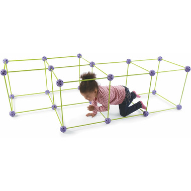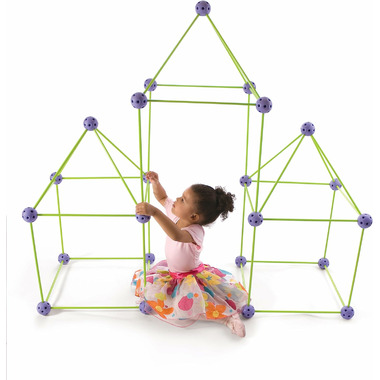 A single Crazy Forts Kit contains 25 geometrically precise balls and 44 sticks that connect to create a multitude of possible play structures. Simply throw a bed sheet over top and watch their creativity flourish. A rocket today an undiscovered cave tomorrow a princess' castle one day and a wild horse in a corral next week are all possible with Crazy Forts. The more they have, the better it gets as multiple kit structures are even more impressive. Durable, portable and best of all, no batteries are required! Crazy Forts makes imaginary play easy and fun!