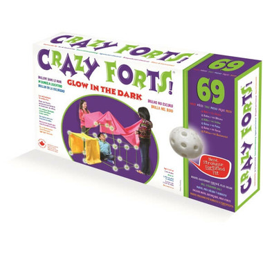 Glow in the Dark Crazy Forts are a unique, award winning, building and creative toy. Glow in the Dark Crazy Forts come with 69 child-safe glow in the dark toggles and rods that join together to build any play space from your child's imagination. Create a "Cave" one day, a "Pirate Ship" or "Castle" the next. Just add a bed sheet for endless fun!