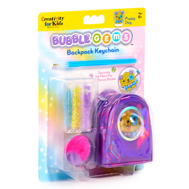 Your kit includes an adorable, trendy backpack keychain and all the crafting supplies needed to design and decorate. Backpack features a "bubble" window allowing your Pearl Pal to peek out. Decorate the backpack with Bubble Gem stickers and a soft fuzzy pompom.