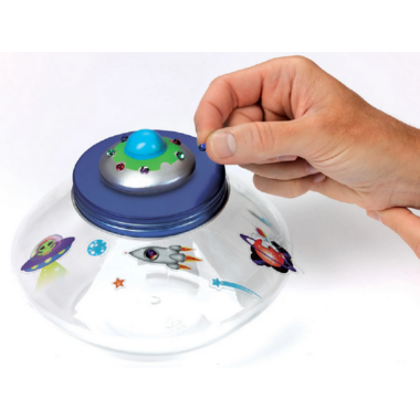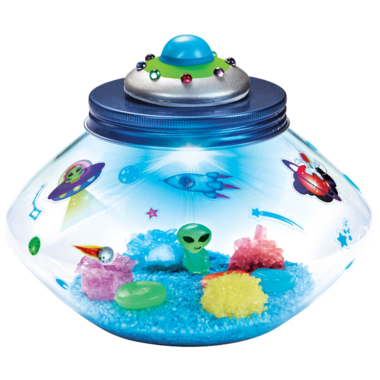 Turn this light-up UFO jar into a space terrarium that is out of this world! Everything you need is included.Your complete set includes; ready-to-grow crystals, crystal powder, sparkling space rocks, a squishy UFO, space gems and colourful stickers.