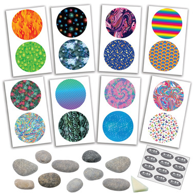 Includes: 16 hydro-skin patterns, 10 natural river rocks, an application sponge and tracking stickers; Just add water!