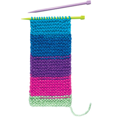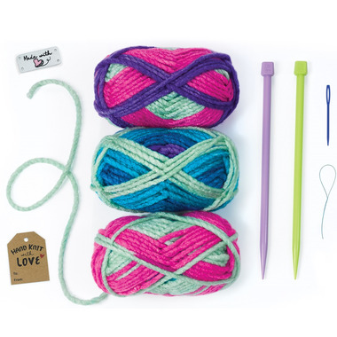 Learn how to knit a pocket scarf with step-by-step, illustrated instructions and online video. Includes colour-coded needles. Great for beginners! Beautifully colour-dyed bulky yarn makes needle knitting easy to learn. Calming and mindful craft, allows users to make, wear and share beautiful handmade gifts.