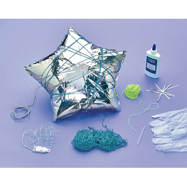 Combining metallic string, bright LED lights and glow-in-the dark cord, this out of this world craft makes an eye-catching accent to a bedroom, playroom or reading nook. Its gentle glow of this star will add a little ambiance to their personal space at night. Includes string art glaze, inflatable star, crafting gloves, metallic and glow string, a 20 LED light string.
