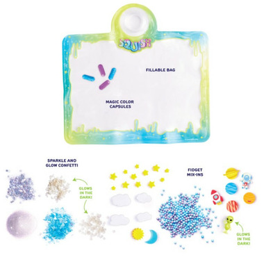 Your kit includes everything you need to mix and make your own super squishy fidget fun – just add water! Add the magic-mix capsules into the Super Squish Fidget Bag and watch as the colourful powder expands into a super-slimy, tie-dye gel! Finish off your creation with cool confetti, colourful foam beads, glow in the dark accents, charms, glitter and more. Just pop on the cap and get your fingers ready for extreme fidget fun. You will be the Chill-est, kid on the planet as you squish and squash your worries away. No more gooey slime to clean up. Parents will love the mess-free, super-strong bag.