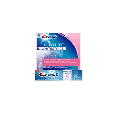 Whiten with Crest 3D White Whitestrips Gentle Routine, a gentle routine for teeth sensitive to whitening.