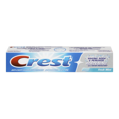Crest Baking Soda & Peroxide Whitening Toothpaste with tartar protection gives you protection against tartar and cavities, helps give you healthy teeth, and freshens your breath.