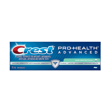Advance to healthier gums and stronger teeth with Crest Pro-Health Advanced. Crest Pro-Health Advanced Gum Protection Toothpaste aids in the prevention of cavities, helps prevent gingivities, and reverse gingivitis in 4 weeks. Builds increased protection against painful sensitivity of the teeth to cold, heat, acids, sweets or contact.