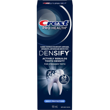 Crest Pro-Health Densify toothpaste rebuilds surface tooth density every time you brush for stronger teeth. Experience Enhanced Enamel Protection* for a long lasting smile that repairs weakened enamel and protects against future density loss. Contains Fluoride for Anticavity Protection. Densify Daily for Best Results. *against acid erosion vs. sodium fluoride