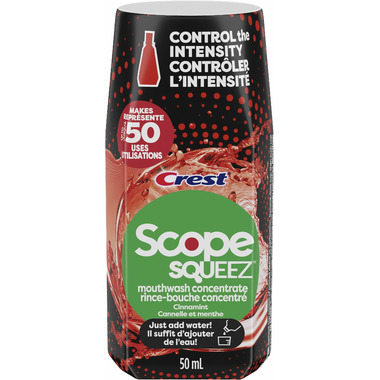 The future of mouthwash is here! NEW Scope Squeez Mouthwash Concentrate gives you the power to control the strength of your mouthwash while leaving you with fresh breath after every rinse. Fill your cup with water and get freshness in every drop. Just twist, squeez, swish to find your Scope Zone
