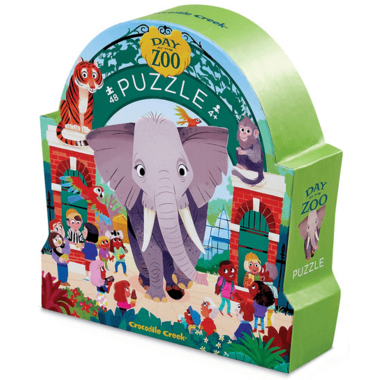 Crocodile Creek's Day at the Zoo Puzzle will transport you to a fun, whimsical zoo. This observation puzzle features a great level of illustrative details that takes into account all the activities that happen at the zoo! The uniquely shaped packaging makes storing this puzzle even more fun. All Crocodile Creek's puzzles are printed with soy-based ink on recycled cardboard. Ages 4+.
