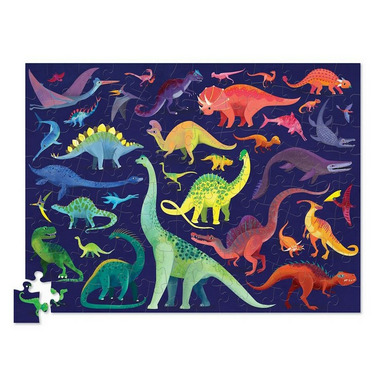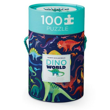 Learn about 36 different dinosaurs in this highly detailed and challenging 100 piece jigsaw puzzle from Crocodile Creek. Suited perfectly for family fun and of course for dinosaur lovers! Sturdy canister doubles as storage when not in use. Each puzzle comes with a naming sheet to help you learn about the different dinosaurs featured. Great for ages 5 and up.