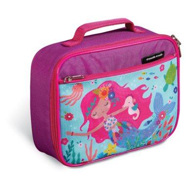Make school lunches more fun with a Crocodile Creek mermaid themed Lunchbox. This high-quality purple lunch box is sturdy and durable with extra lining to keep food fresh and padding and structure to prevent crushing. There is plenty of storage space to fit a variety of back to school accessories and a sturdy nylon handle for easy portability. Easy to use zippers for little hands to open and close. Simply wipe lunch box with a damp cloth after each use for easy cleaning. Lunch boxes are PVC free, Phthalate free, BPA free, and vinyl free. Recommended for children 3-8 years old and is perfect for school, camp, or travel.